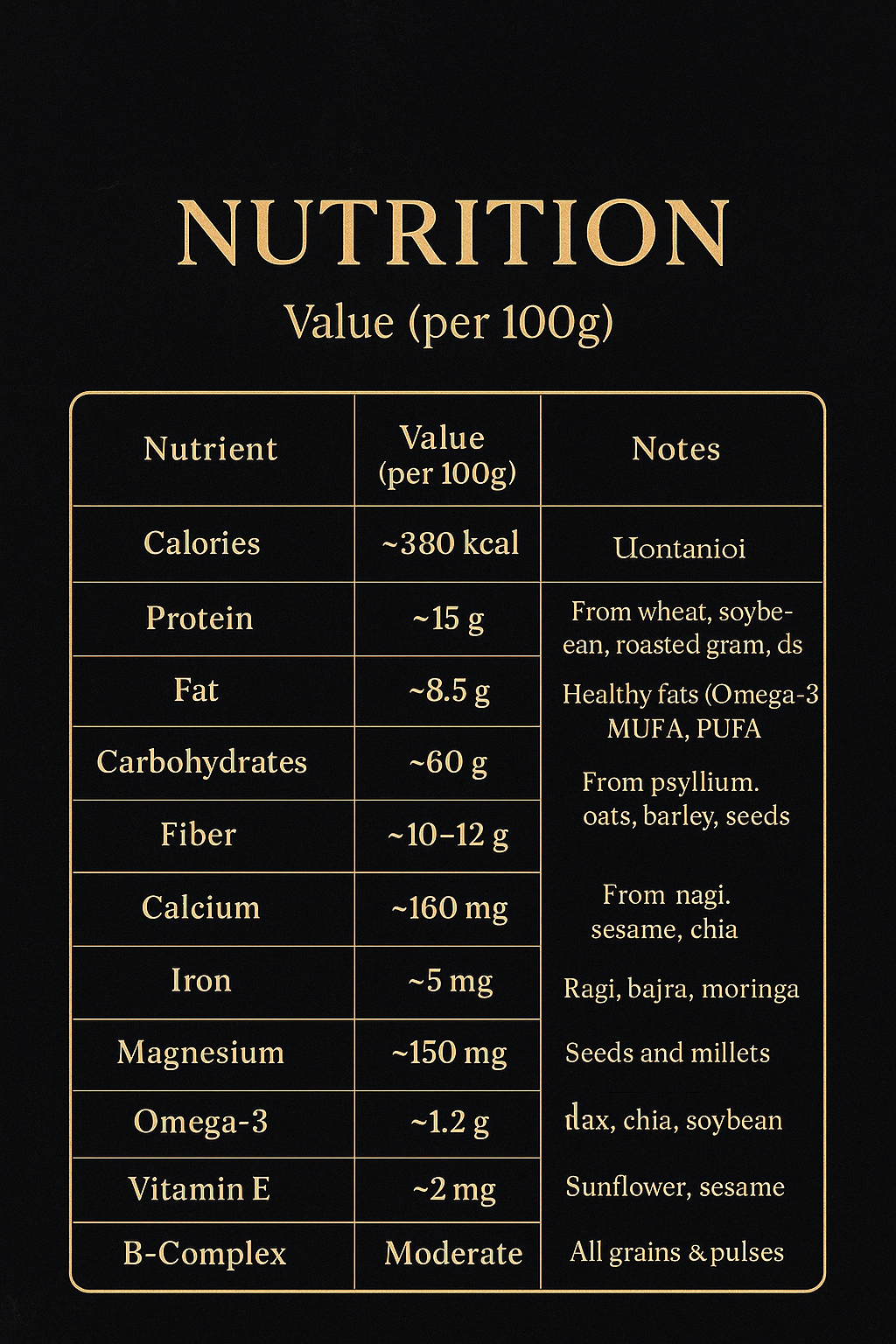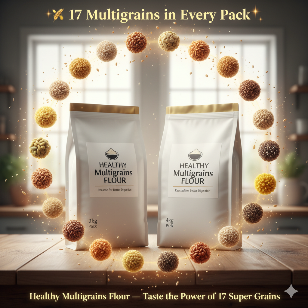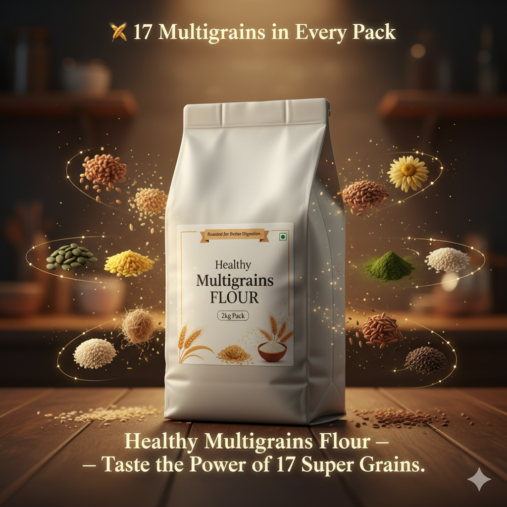 Our Multigrain Flour is rich in fiber, protein, and essential nutrients — perfect for a healthy lifestyle.